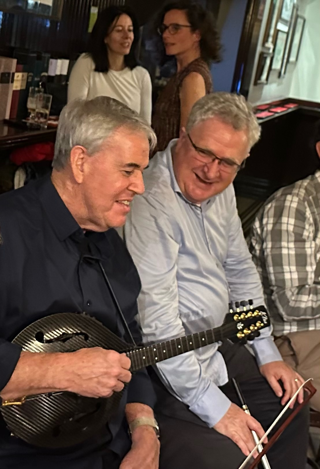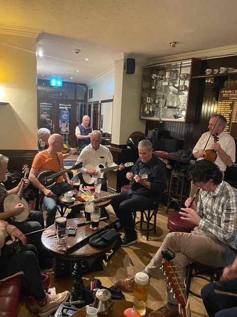 Playing with local musicians at traditional pub.