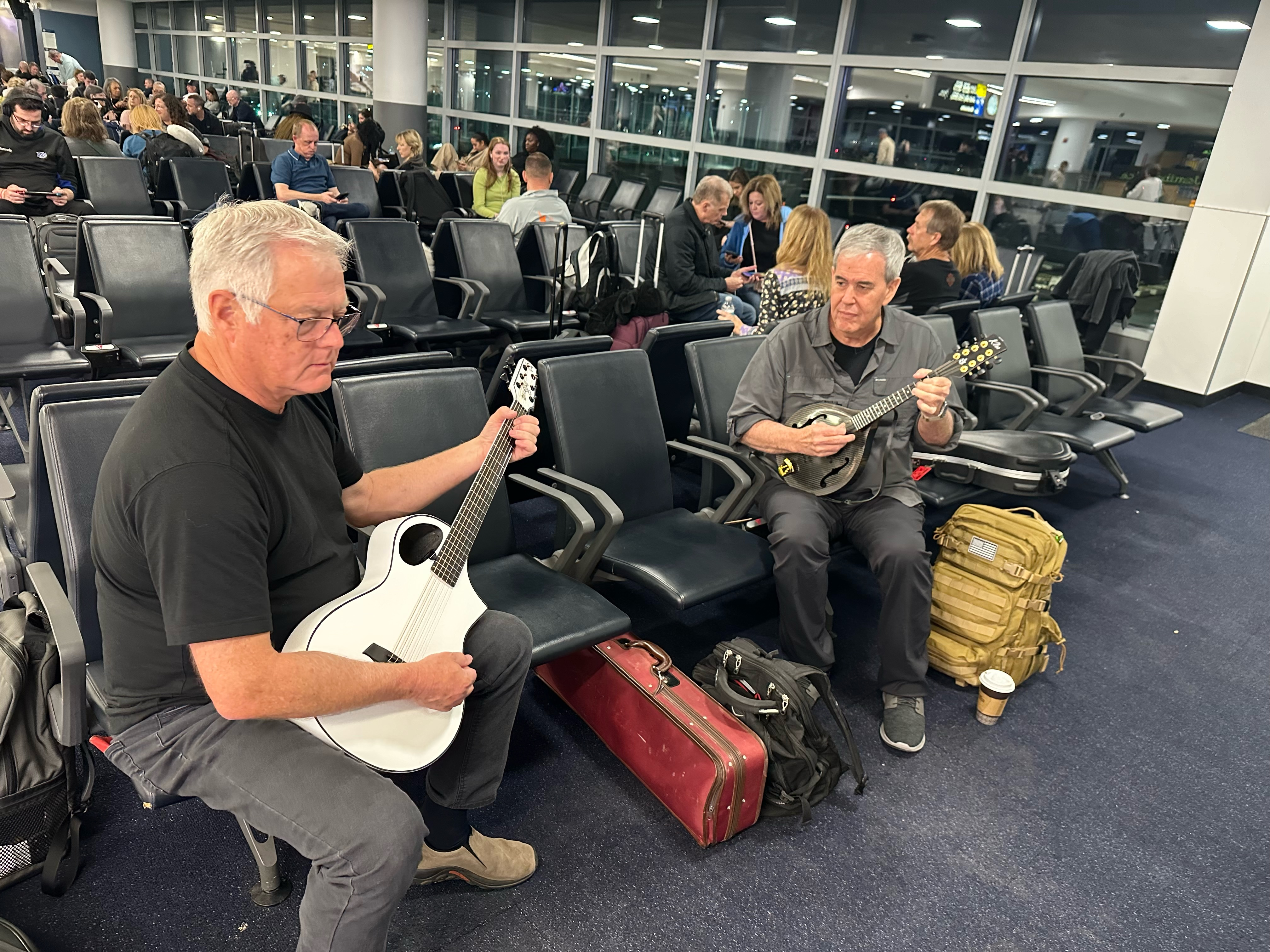 Getting in a little extra rehearsal at JFK Airport waiting for the 7 hour flight to Dublin, Ireland.